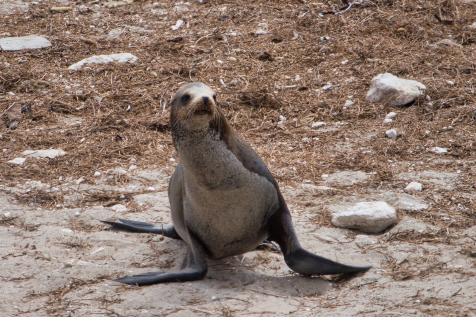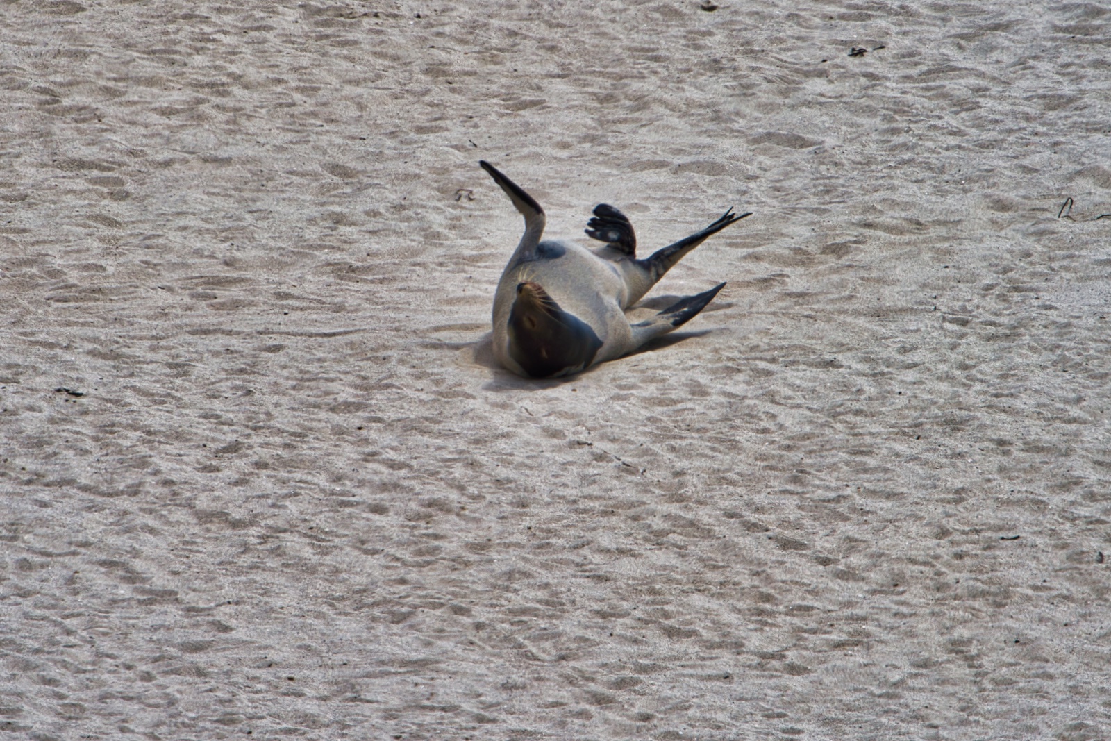 Seal rubbing itchy back at Point Bennett, San Miguel Island