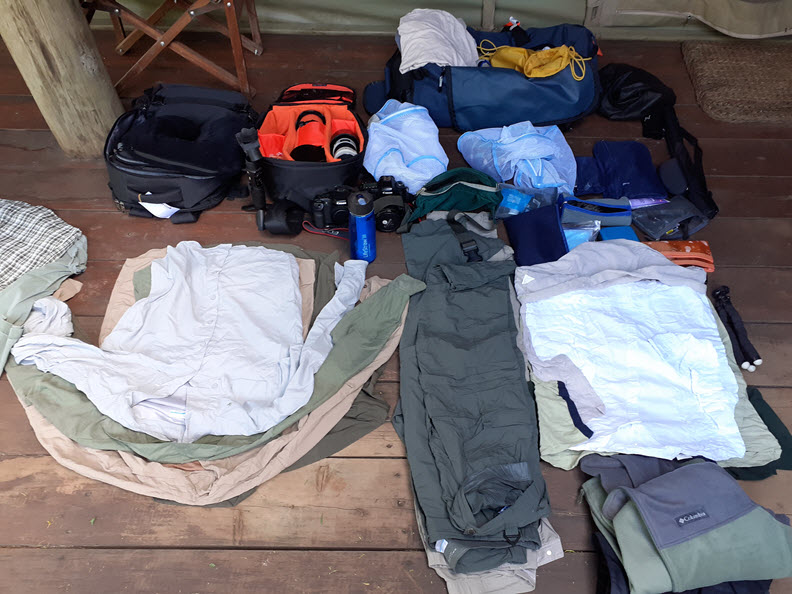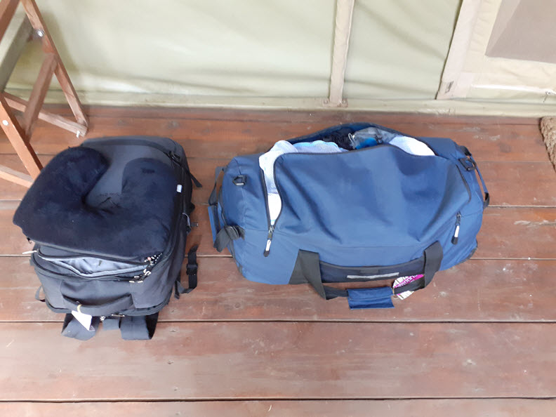 Since we are on safari, I had to pack light meaning, one checked-in duffel bag and one carry-on bag for my camera gears.