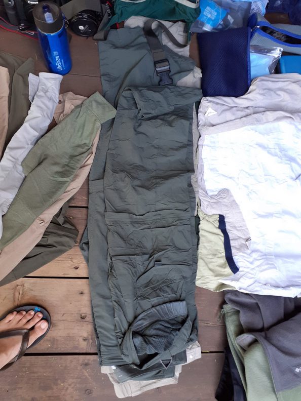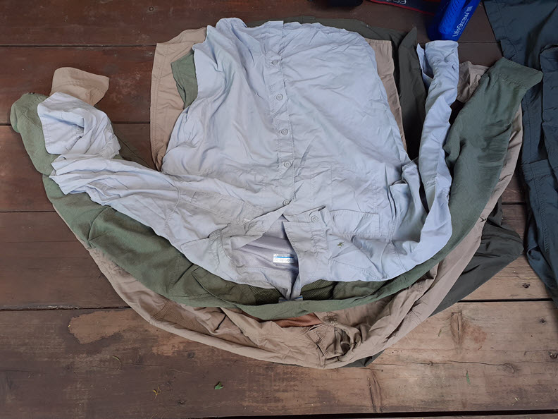 I love the long sleeve shirt from Columbia which can also roll up to a short sleeve. It also has some sort of Sun UV Prevention layer to it. Note that during the morning it can be cold and in the afternoon, it can be sunny with a lot of sun burning on your skin. So a good long sleeve shirt will help you from having a sunburn.